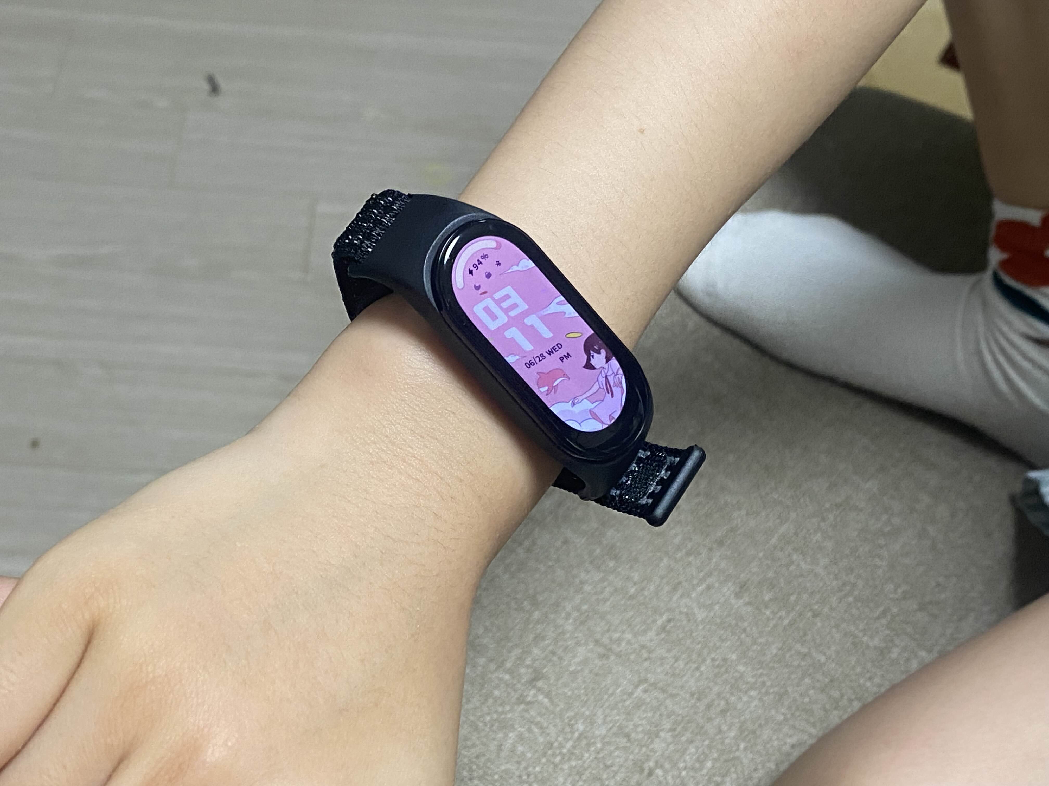 초2 매우 마른아이에 손목에 착용샷.. 스트랩 찍찍이를 끝까지 감싸도 남는다