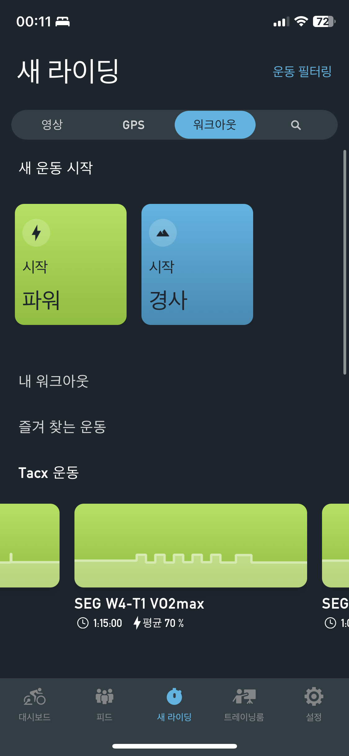 가민으로 워크아웃시 ERG를 실행시키는 법을 찾아봤는데 결국엔