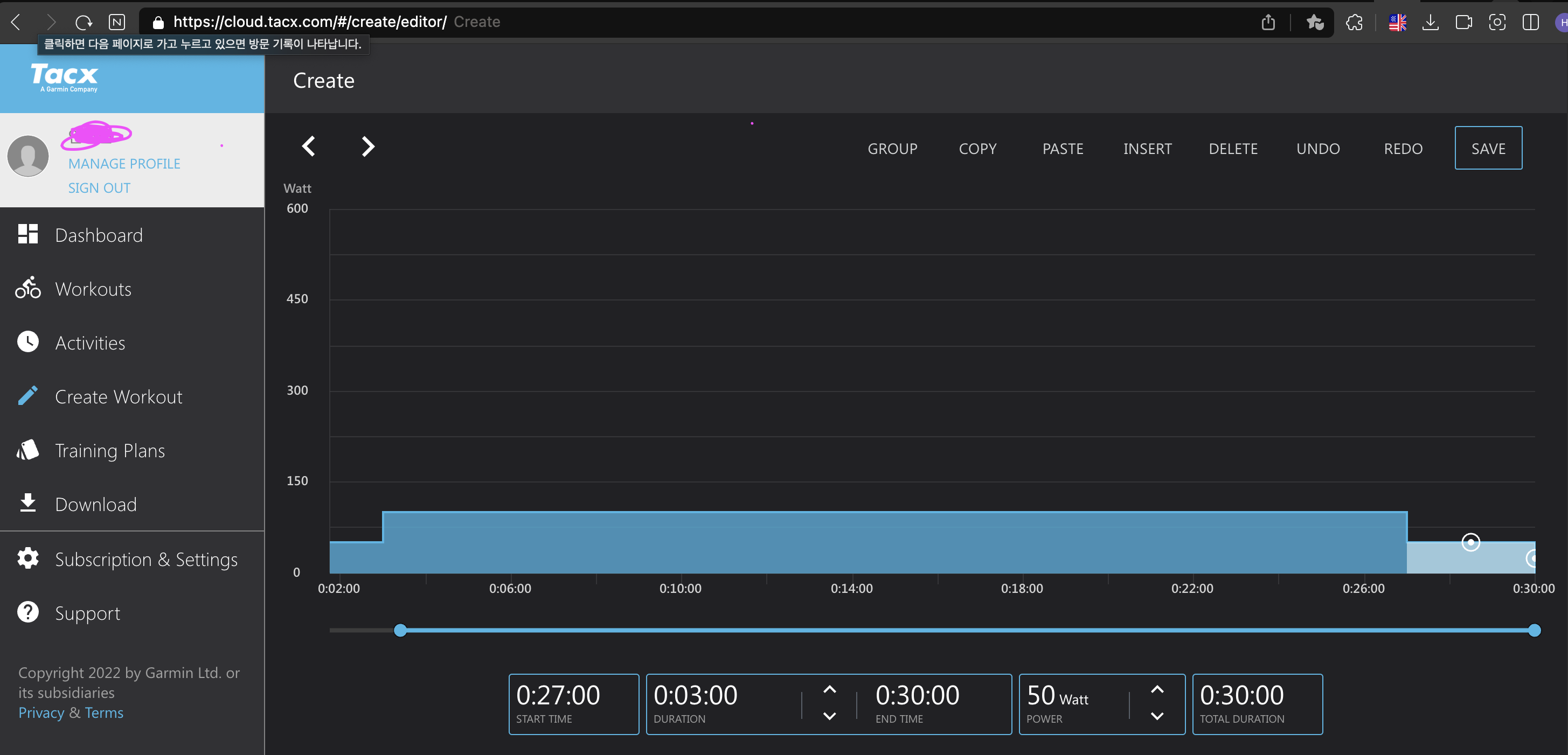 다만 워크아웃을 가민에서만 만들었더니.. 연동되어서 조절되는게 아니라
