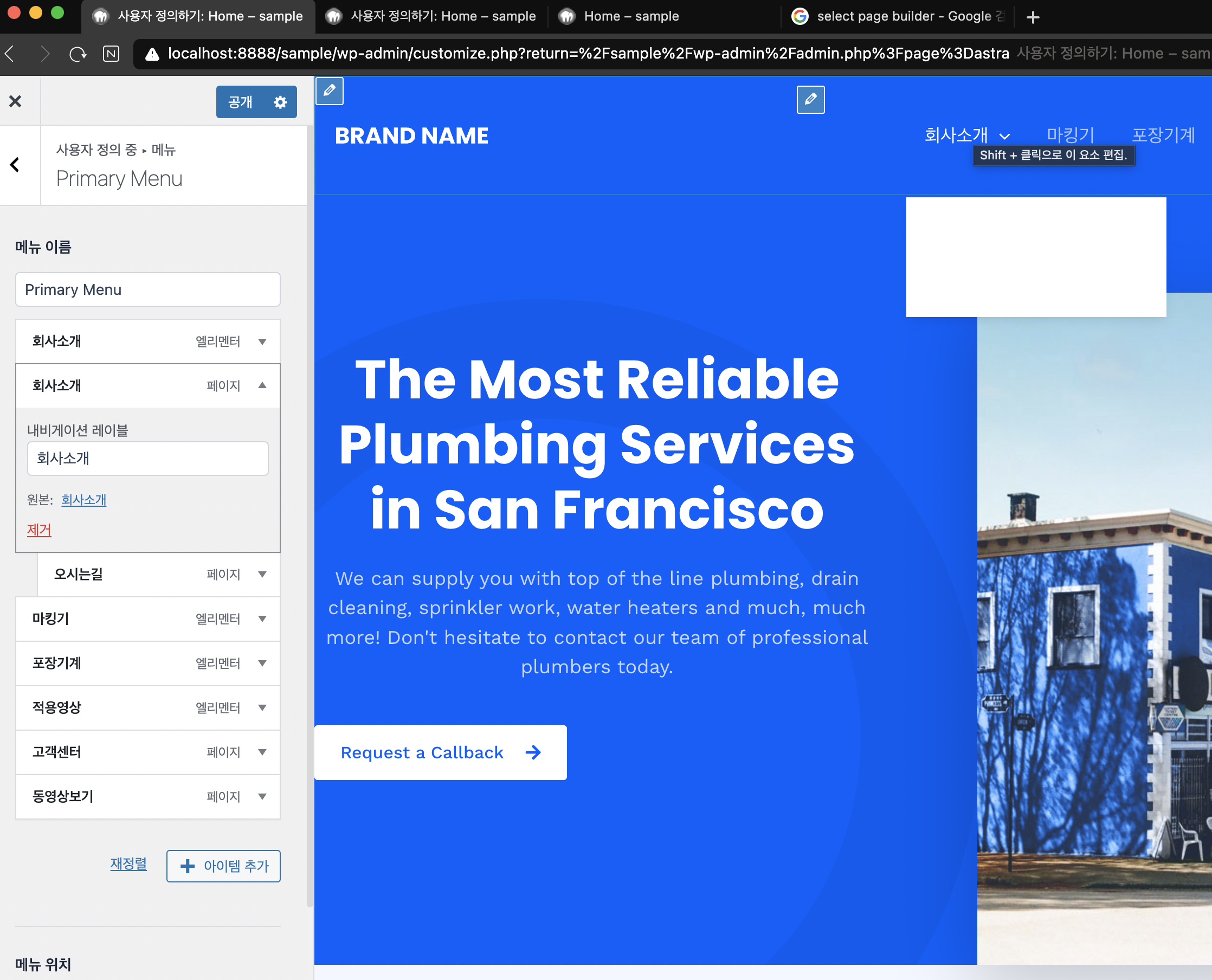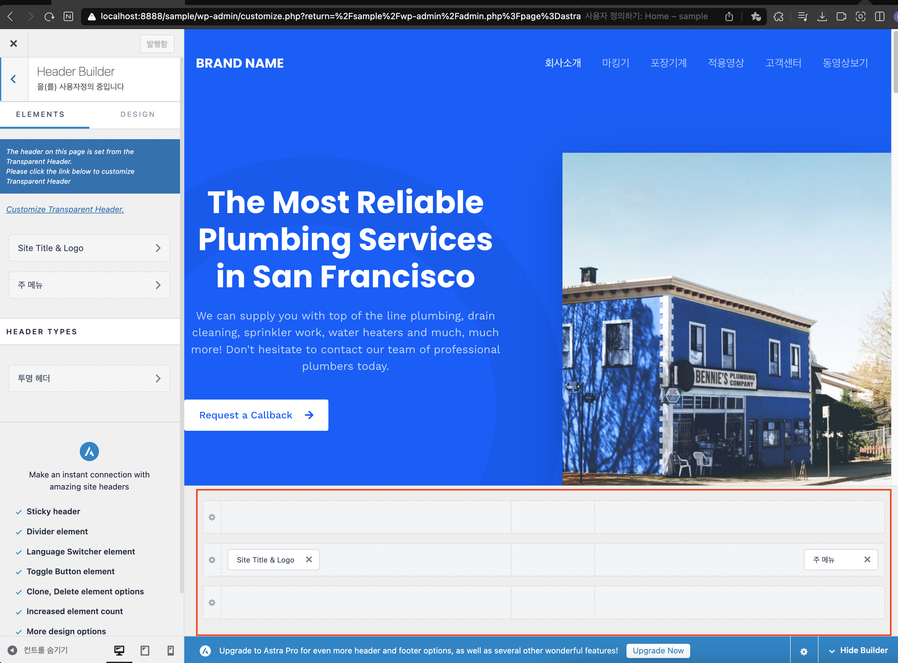 header builder 메뉴로 들어가서 필요없는 부분 삭제하고.. 필요한 내용만 남겨두자