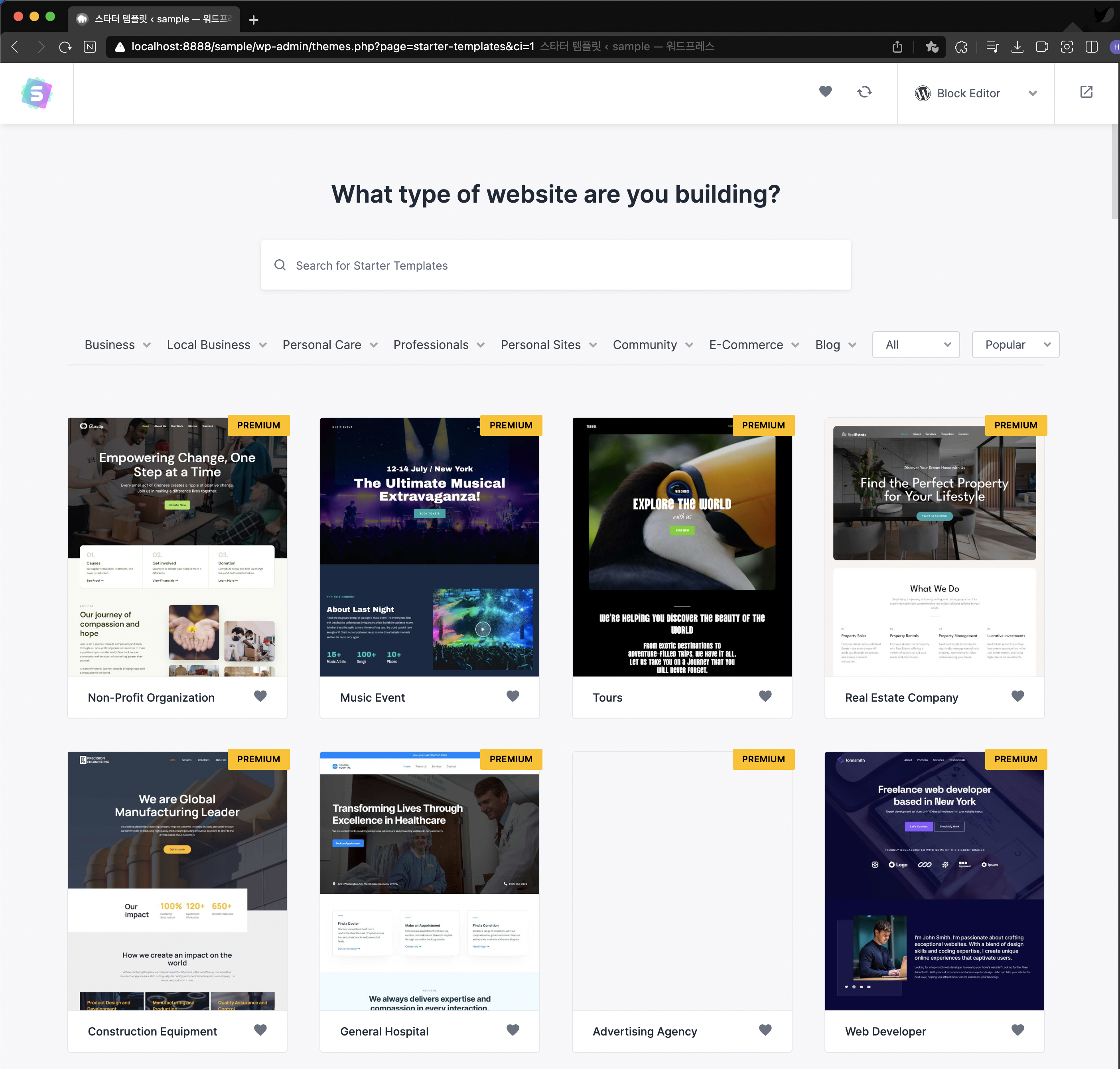 시작하기를 누르고 plugin은 다운받으면 다음과 같이 템플릿 선택 페이지로 이동한다.