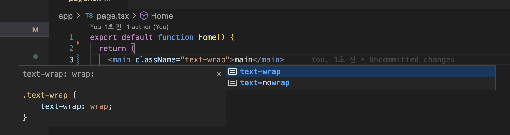 맥기준 controll + space 누르면 자동완성이 뜨고 거기서 한번더 controll + space 누르면 css 가 어떻게 적용되는지 확인가능